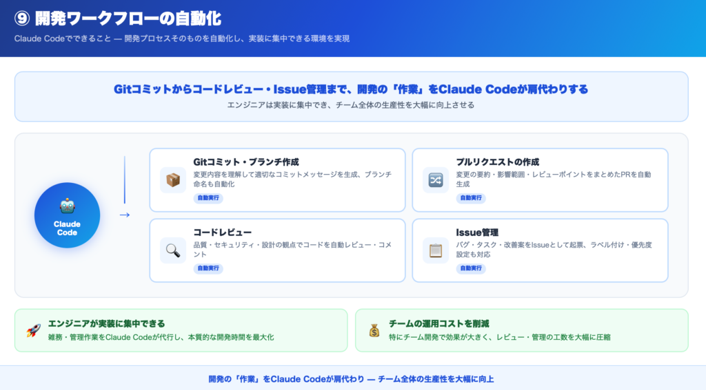 Claude Codeは、開発プロセスそのものを自動化することが可能です。