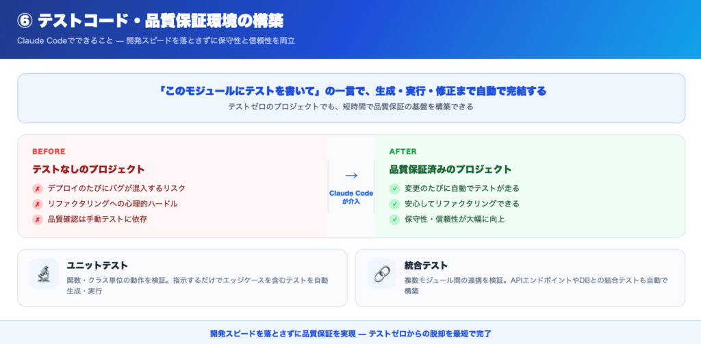 Claude Codeは、テストコードの生成と品質改善にも強みを持っています。