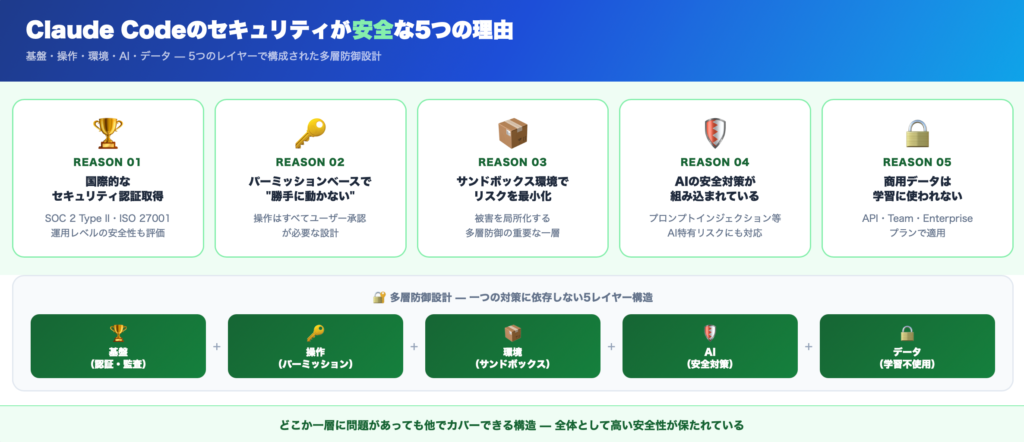 - Claude Codeのセキュリティが安全な5つの理由
