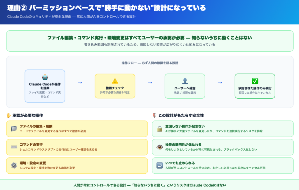 【理由②】パーミッションベースで“勝手に動かない”設計になっている