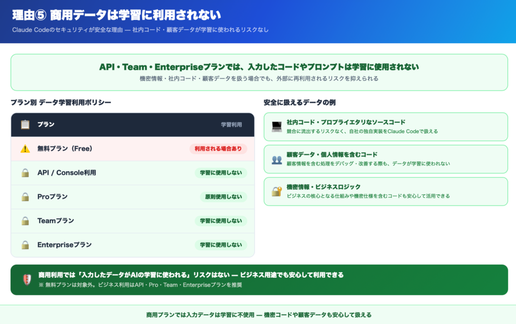 【理由⑤】商用データは学習に使われない