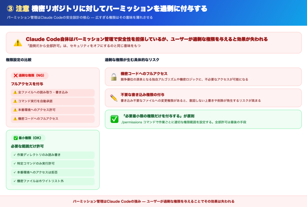 ③ 機密リポジトリに対してパーミッションを過剰に付与する