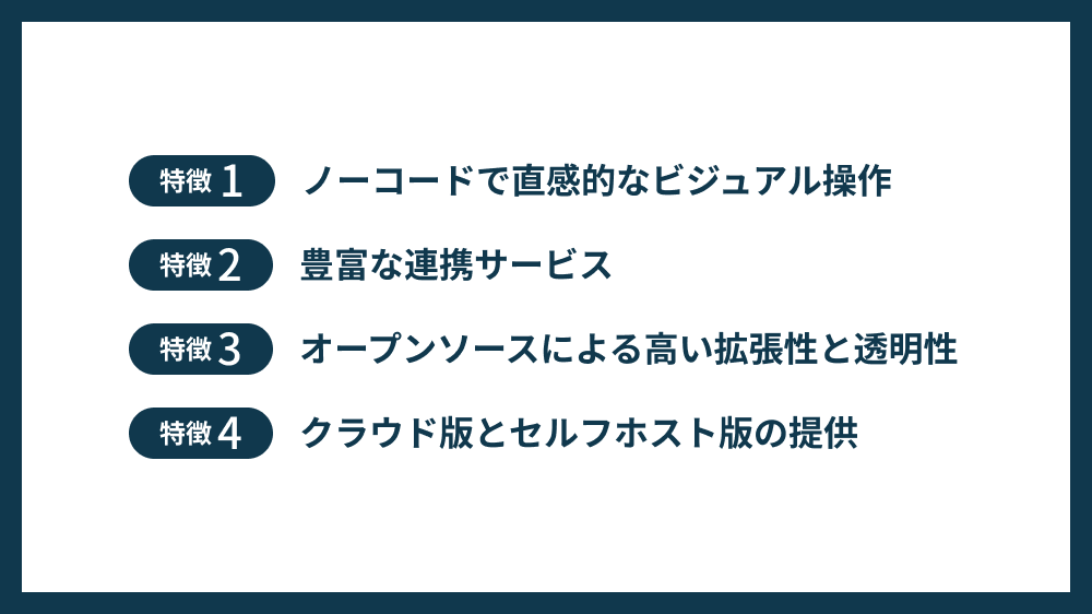 このようにn8nは、クラウド版で手軽に始めることも、セルフホスティング版で強固に自社運用することもでき、様々なニーズに応じて柔軟に導入形態を選択できる点も優れた特徴と言えます。