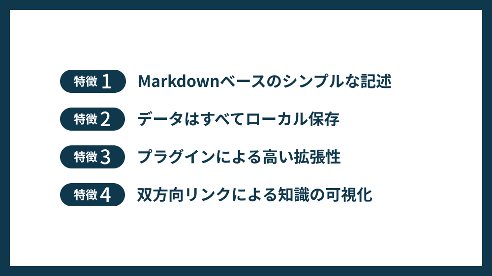 ここでは、Obsidianの代表的な特徴を4つ紹介します。