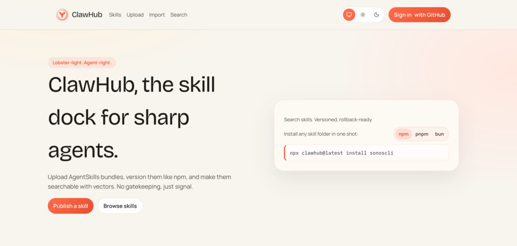 OpenClawは、スキル(拡張モジュール)を追加することで機能を拡張できる設計です。最初から万能な業務AIとして固定されているのではなく、自社の業務や運用ルールに合わせて“必要な機能だけ”を組み合わせていけるのが大きな特徴になります。