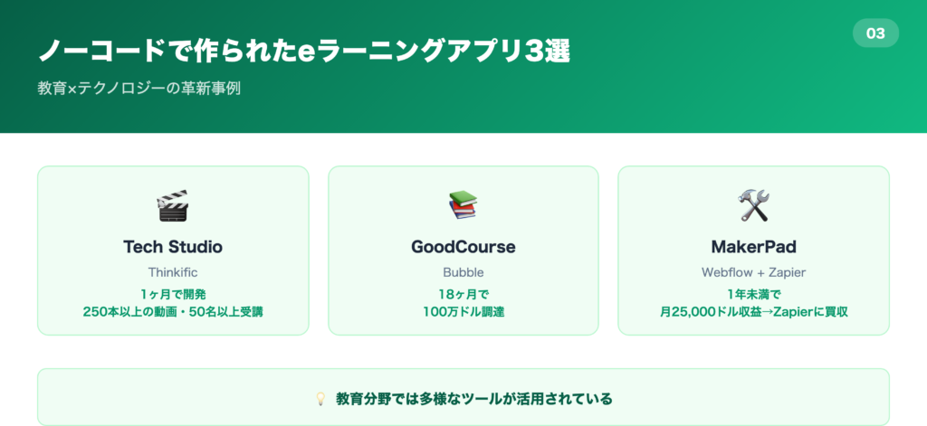 ノーコードで作られたeラーニングアプリ3選