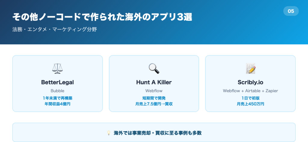 この売却事例は日本でもBubbleが広まってきていることを示しており、今後ますますノーコードによる開発が増えていくことでしょう。